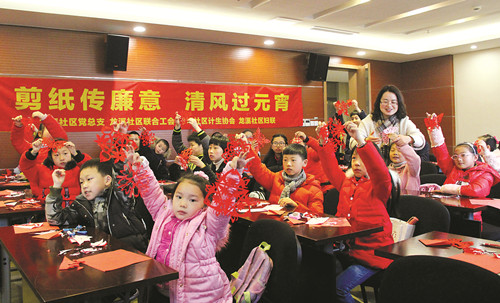 ④开发区凤凰街道龙溪社区开展了“剪纸传廉意清风过元宵”主题活动。