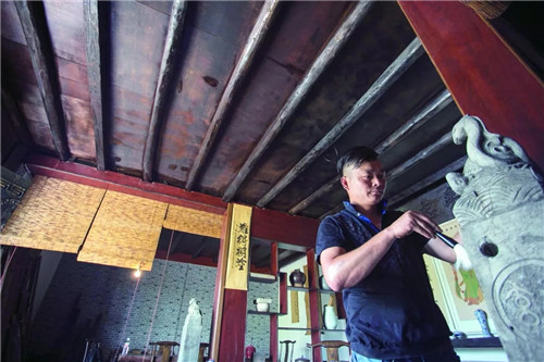 保护古宅光靠一腔热情是不够的,刚退伍回乡囊中羞涩的他选择来到湖州创业并落户。通过几年的努力,事业上颇有起色的他,慢慢开始了古宅保护研究的道路:学习古宅保护的相关知识、走遍全国寻访一些被遗忘在历史角落的古宅、招募能工巧匠共同加入古宅保护事业。15年来,他边学习、边收藏、边修复,收集而来的古宅木雕堆满了两个仓库。