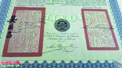 吴尔昌1913年在陇秦豫海铁路债券上的签名