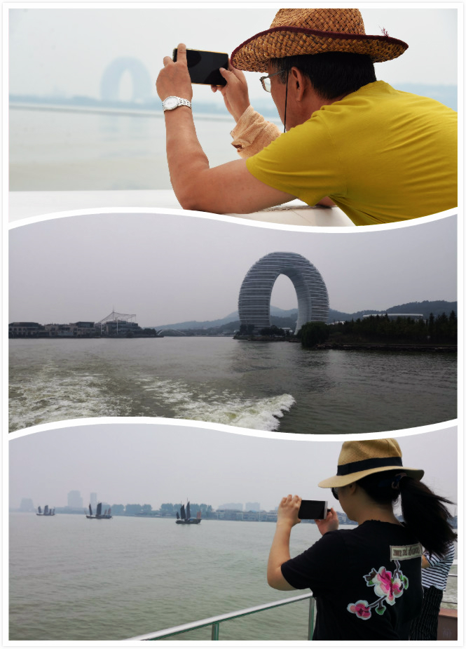 小伙伴要做微信直播采访,邀我一同前去。浅秋的太湖,天气不错,虽然气温在30摄氏度左右,还是有些闷热,但天空无云也无风,湖面风平浪静,这种天气很适合太湖行船。下午1时,我们在度假区的码头登上游船向太湖进发,今天的目的地是到太湖深处,看渔民从超大的渔网中捕获鱼虾,把第一视觉和信息传递给网友。