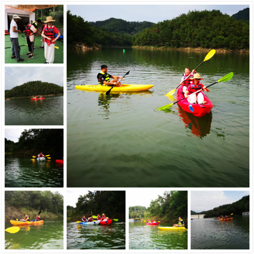 我们尝试了颇有刺激的水上皮艇,蓝天白云伴着阵阵微风,有一种“岁月静好”的舒适感,这是一项可以放松身心的运动。计同学又引领我们体验了蔬果生态采摘和运动餐厅的特色白笋宴、有机健康菜品。“还可以买房子。”走上山坡,五峰山·枫林山居鳞次栉比,以养生度假为设计理念,藏山纳水,绿树繁花掩映,通过半围合型制,将身心融入湖光山色林海之中,唤醒内心的能量,感受生命的从容舒展。中午饭就在五峰山·峰味运动餐厅吃了。一问才知道,这里的纯天然食材由五峰山农业公司专供的,新鲜、绿色、无污染的果蔬及调味酱料,确保了峰味运动餐厅食品的生态健康、绿色营养,实现了饮食文化中“色、香、味、形、体”的完美融合。