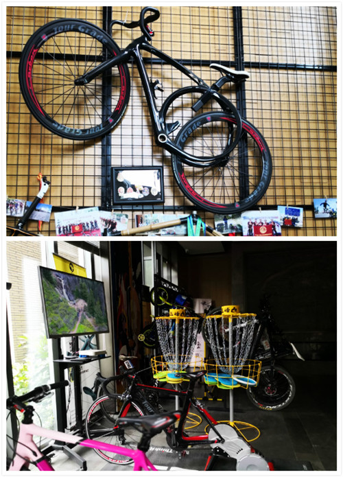 我们目不暇接地走着、看着,仿佛在探寻“山里边有没有住着神仙……”计同学介绍说,工程项目分为两期进行。一期工程约1300亩,主要包括体验区、康体中心、运动员公寓配套设施以及果蔬园。已启动开幕的德明骑侠驿站和一冰书院爱书吧是一期工程重要的配套休闲项目。一冰书院以中国体操教育之父、《体育杂志》和体育专业报纸《体育界》创始人、南浔乡贤徐一冰先生命名打造。作为湖州图书馆的分馆,一冰书院首期配备图书1000册,二期还将通过网络共享市图书馆100多万册图书期刊资源。而德明骑侠驿站则是受到人类历史上徒步环游地球第一人、湖州乡贤潘德明的启发而设立,由五峰山运动度假村与骑友网联合共建,为骑行爱好者提供旅游咨询、骑行线路、能量补给、活动会议、维修保障、单车租赁等服务。作为骑行爱好者的休闲站点,驿站还配套了室内的虚拟骑行系统,供游客体验。