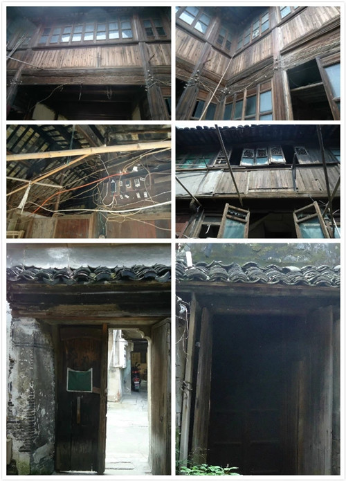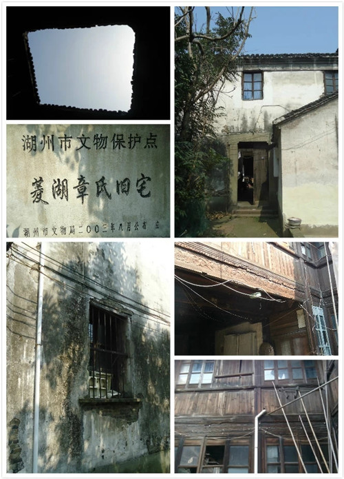 弄堂的尽头是街道吗?也许曾经繁荣过的菱湖早已安静了。中午时分,在一条叫王家门前的街道上遇见了镇上的“活字典”李惠民老师,他如数家珍地介绍了附近几处老宅的出处:这边是爱国民族资本家、现代菱湖的奠基者章荣初为报其嫂资助之恩,于1932年献造的两进三开间大宅。转眼一看,宅前立着一块2003年湖州市文物局制发的“湖州市文物保护点 菱湖章氏旧宅”的碑。走进去,四壁是木楼,墙壁上有苔藓及细长的杂草,几户人家居住着。我们抬头看那方口的天井顶,想象着它的昨天,不知道这种布局紧密严整的老宅,曾经发生过什么样的故事。那边是章荣初读书的私塾,也就是教私塾的费先生家。进去一看,都是差不多的状况,房子颇有年代感,现在都是居民大杂院。昔日的繁华仿佛那门、那窗、那天井,在时代的空间摇曳,随年代更迭安静地远去、老去着……