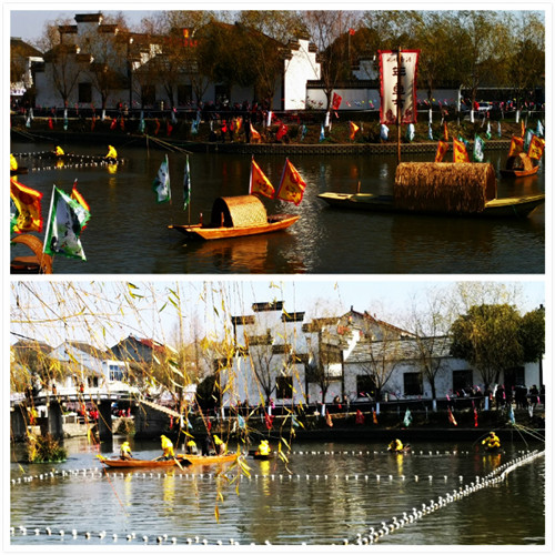 桑田,小河,拱桥,渔船……冬天的辑里村尽管寒冷,但正巧赶上了久违的艳阳天,别有一番风韵。与大多数水乡一样,村落夹河为市,村民依水而居,跨过分龙古桥便是一块诺大的河漾,这便是村居的核心区了。这天适逢“风情南浔”第二届年鱼节,辑里村把丝绸文化、农耕文化与美食、古村、传统技艺等元素相结合“打包”展示,让远近游人领略了一把数千年来人欢鱼跃的水乡美景。