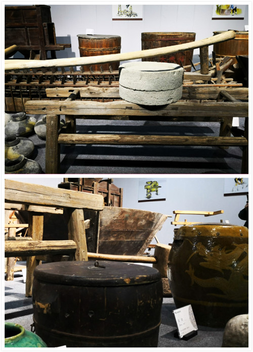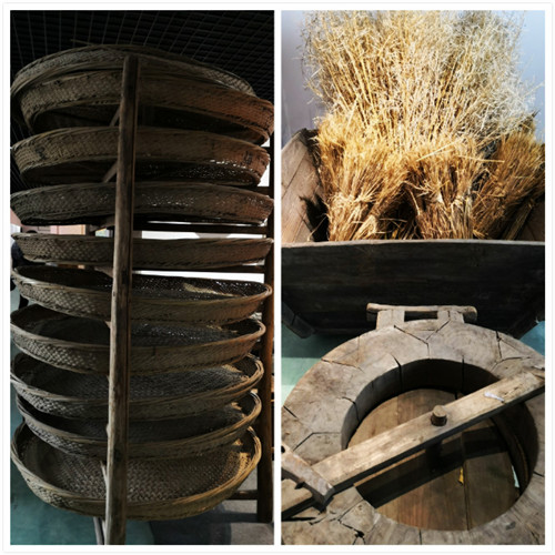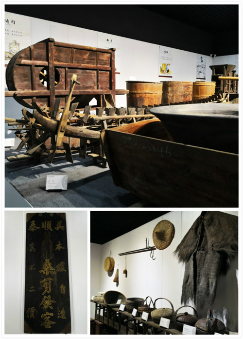 好巧,在博物馆遇见王一士陪着一拨拨客人在参观讲解,不便打扰,我就自个儿观摩、体味这些农耕文化的本来面目。古村落是中国农耕文明的“活化石”,不仅寄托着挥之不去的太湖乡愁,更传承着民族的历史记忆、生产生活智慧和传统核心价值。大多数物品对于我来说是太熟悉了,蚕匾蚕架、石磨石碾、丝织衣衫、蓑衣笠帽、水车风车、水缸瓦盆、钉耙木犁、杆秤簸萁、菱桶脚缸、织布机、打谷桶、煤油灯……还有许多看似熟悉但已经叫不出名的日常生活用具。有的我曾经用到过,有的家里现在也有,感觉像是回到了过去一样。这里俨然已成了一块集观赏与体验蚕丝文化的生态园,难怪浔练公路边一个不经意的村落会吸引众多游人慕名而来。