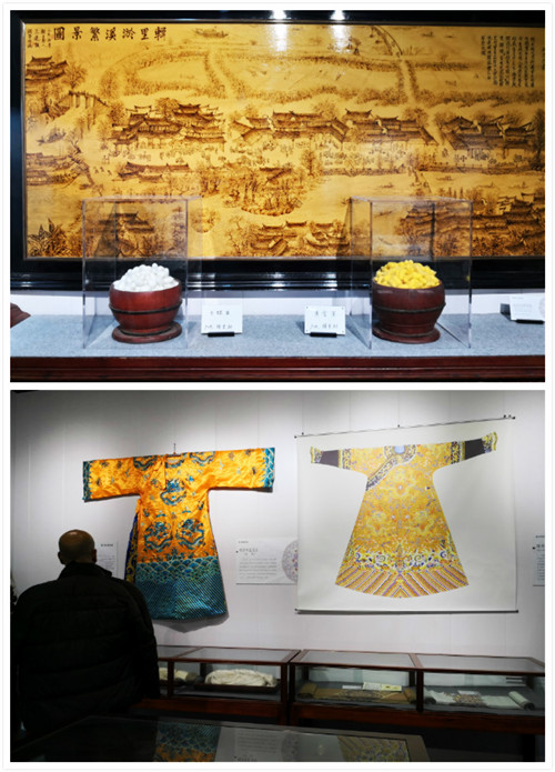再走几步就是刚开张的辑里湖丝博物馆。如今,新的辑里湖丝也许因为“辑里人家”而再展宏图。为了让更多的人了解辑里湖丝,前几年就听王一士讲起过,除了自己家里和镇上的湖丝博物馆以外,希望为自己多年收集来的“宝贝”安一个新家。于是他在村里承包了一块地,扩建一座集种桑养蚕和观赏、体验、休闲、教研于一体的博物馆。现今的由中国美院设计的博物馆分为两个区域,共有400多平方米,有展厅、展柜,有展示区、互动区,并设计了丝绸、农耕等多个主题,陈列展出他多年收集来的与辑里湖丝文化相关的传统农耕工具、艺术品以及其它有文物价值的物件,共300多件。