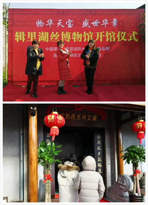 本想先拜访一下桥边王一士在村里的“辑里人家”,但听说辑里湖丝博物馆今天对外开放,我们就迫不急待地往东走去。在转弯处,耸立着一幅醒目的宣传牌,上面写着:“辑里,这里是世界丝绸文化发祥地,这里是首届世博会金奖故里,这里是四象八牛源头和活水,这里是中国近代工业萌芽地,这里是憧憬梦想的诗画窗口”。简洁的言语、恢宏的气魄,让人肃然起敬。