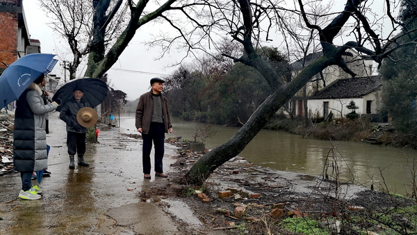 奶爸带着我们向村中心走去,只见原先热闹的沿河民居大多已经成了废墟。“不远处要建设高铁站,很多配套项目需要用地,再过一两年,这里要大变样了。”奶爸兴致勃勃,边走边指指点点,“这棵树,建军还记得吗,你小时候经常爬上去的。”在一棵斜着伸向河边的老树边,潘建军连声说 “记得,记得”,便当众演示了儿时玩耍的动作。