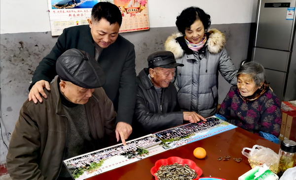 这时,奶爸拿出两张大幅合影照片,一张是2013年6月30日“中国共产党建党62周年紫金桥村全体党员合影留念”,一张是2019年11月10日“中共湖州市吴兴区八里店镇紫金桥村党总支委员会合影”。奶爸奶妈和儿子张小明、潘建军夫妇一同围着照片找寻老党员奶爸的身影。奶爸奶妈你一句我一句,记者听出了他们的意思,今年是确保全面建成小康社会圆满收官的一年,国家好才有我们的小家好,奶爸点头称是:“搬到新房子后,要把这两张照片放在客厅显眼的地方。”潘建军接口说:“到时候我来帮忙。”
