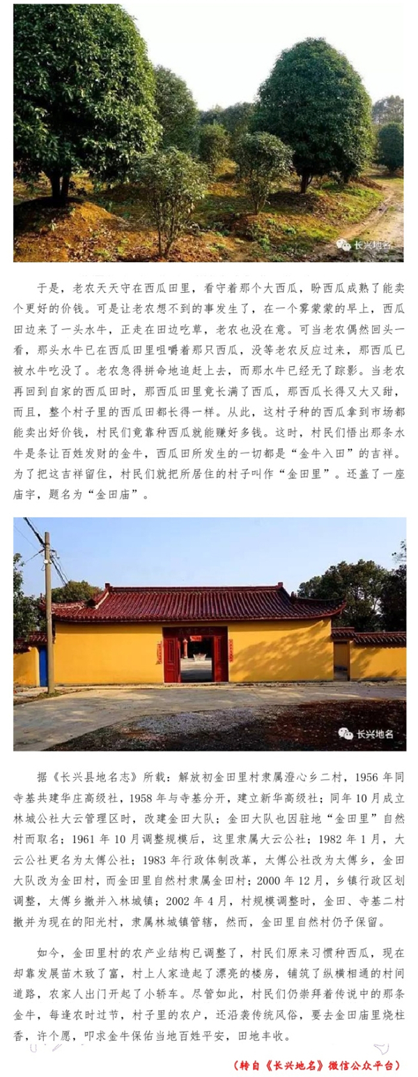 长兴“金田里”地名的传说